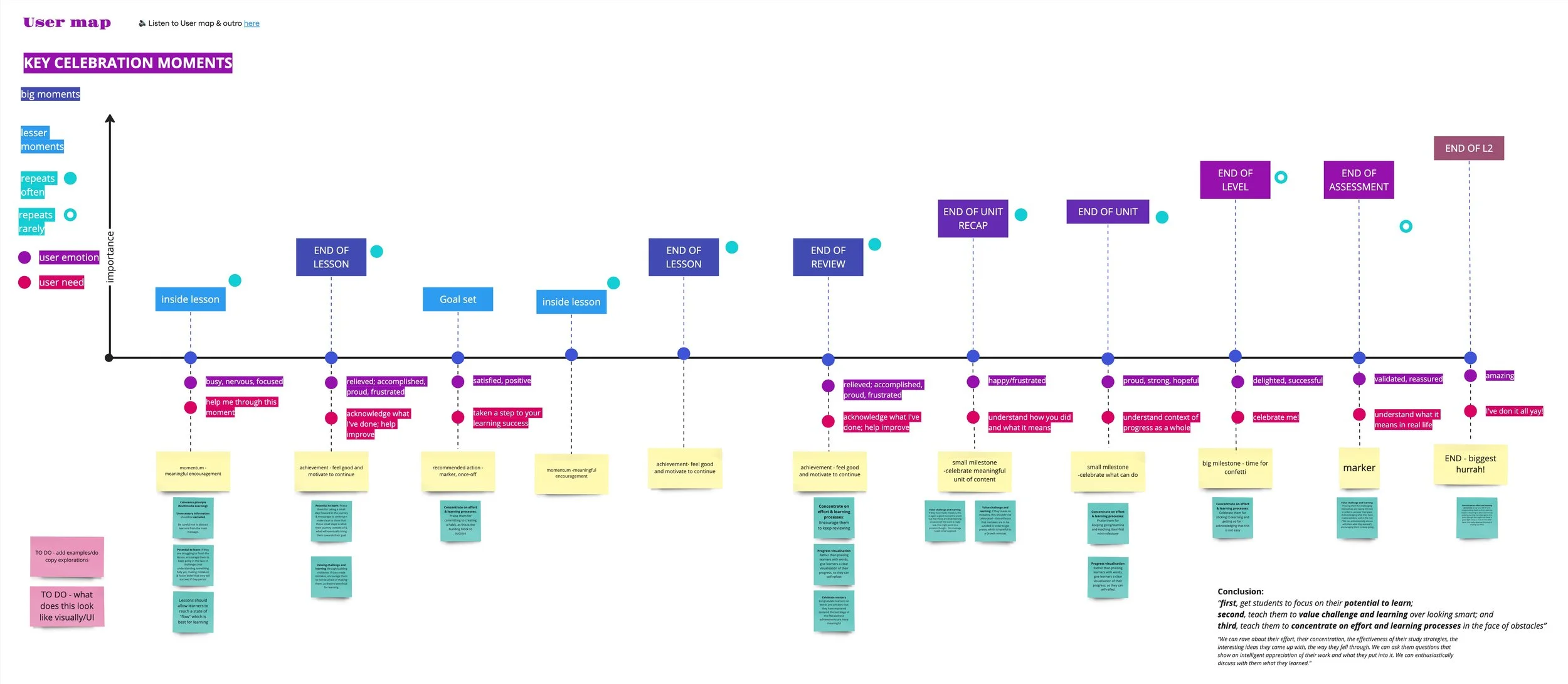 Version B was rolled out to all users. I was delighted to be able to create two important artefacts that help not only the content design team when working on motivational and celebration messaging, but also stakeholders such as product managers and product designers to understand what "celebration" means and ideas on how to communicate this to users at various stages of the user journey.