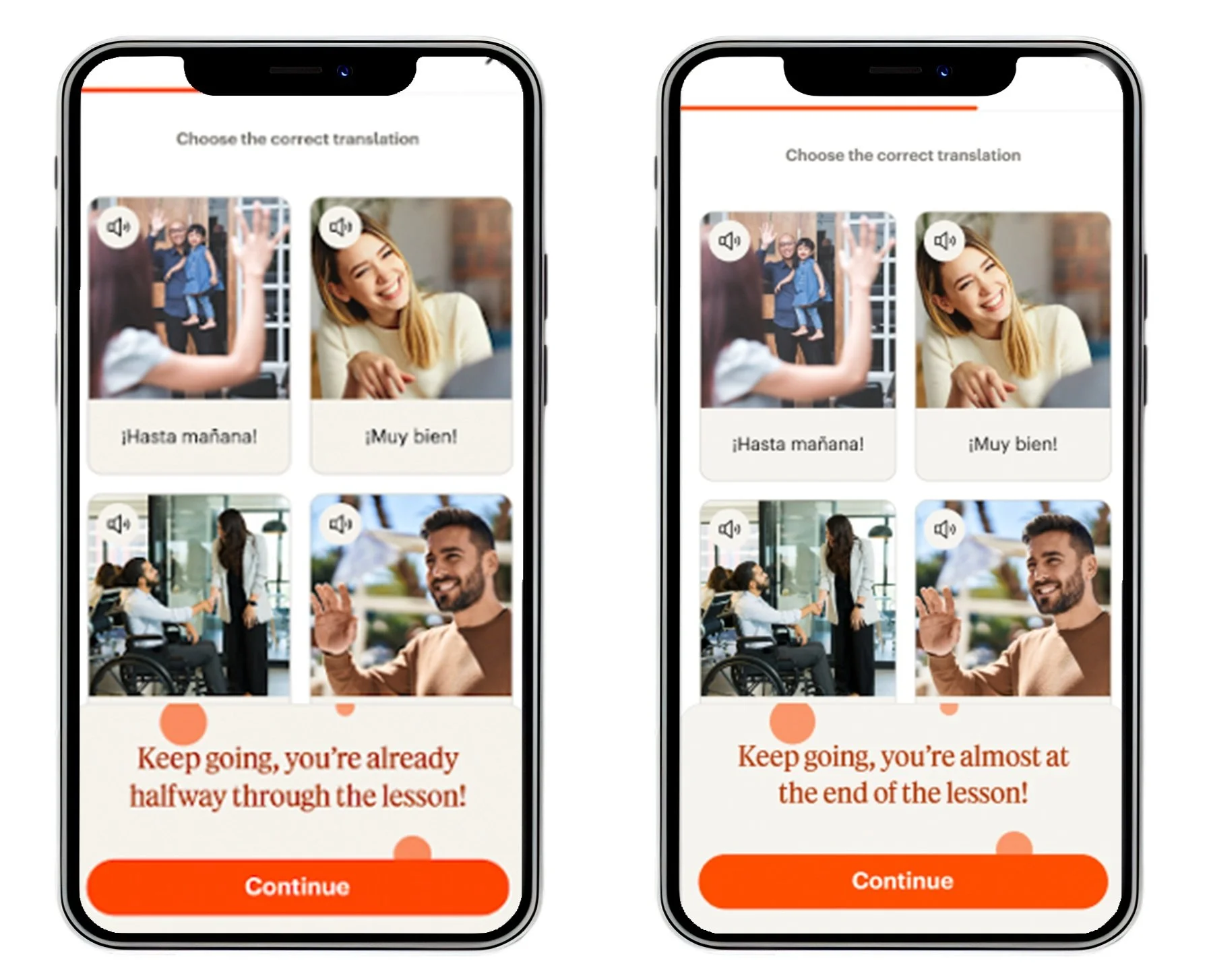 If a user is encouraged and acknowledged for their progress in a lesson, they are more likely to finish it and be motivated to start another lesson.