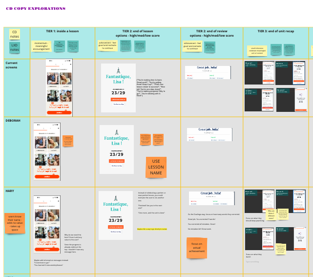 From a business standpoint, Babbel's new branded coaching voice needed to be incorporated into product copy, and that meant improving celebrations messaging in product touch points.